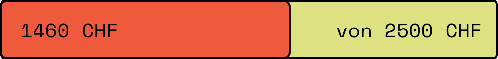 Bisher wurden 1’460 CHF von angestrebten 2’500 CHF (Ziel 1) gespendet. Du kannst unser Crowdfunding entweder per Twint oder per Banküberweisung unterstützen. Du entscheidest, welcher Betrag für dich stimmt.